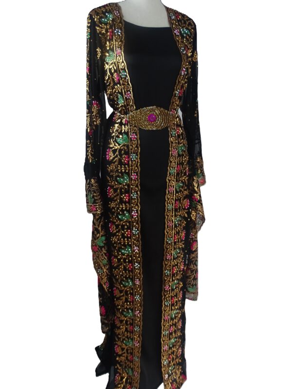 Das Kleid kann vielseitig kombiniert werden, sei es mit einer schwarzen Weste oder einem stilvollen Xeftan, um Ihren Look individuell zu gestalten.