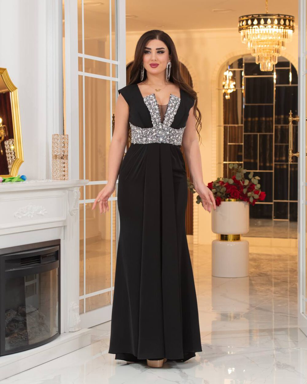 Erlebe die Magie der Nacht mit diesem eleganten Abendkleid in klassischem Schwarz. Der fließende Schnitt und die funkelnden Details machen es perfekt für stilvolle Anlässe wie Galas oder exklusive Dinnerpartys. Der glamouröse Ausschnitt und die edlen Verzierungen verleihen dir eine zeitlose Anmut, die dich zum Mittelpunkt jeder Veranstaltung macht.