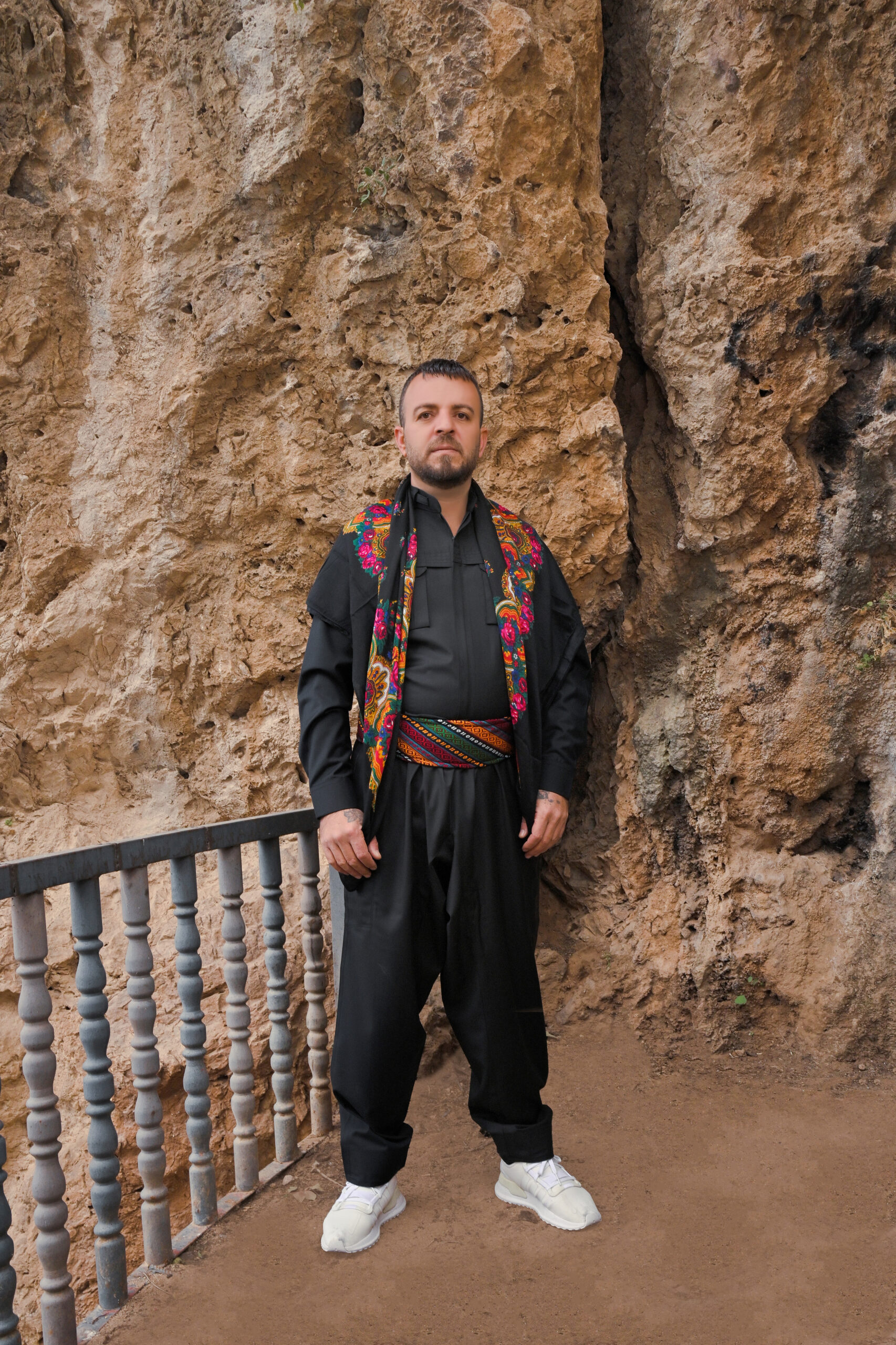 Typisch für die kurdischen Regionen wie Şax, Akrê, Duhok und Umgebung, besteht das Outfit aus einer locker geschnittenen Hose (Şal) und einem taillierten Oberteil (Şapik). Der breite Stoffgürtel sorgt für Halt und bringt das Ensemble stilvoll zur Geltung.